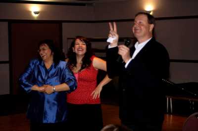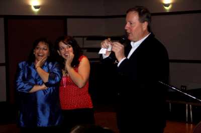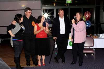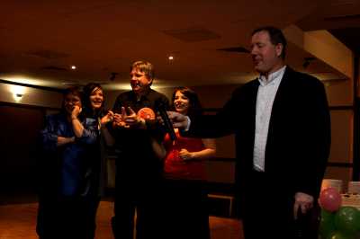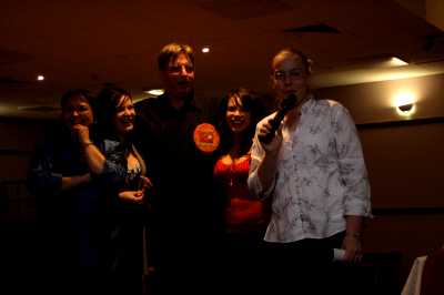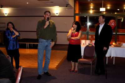 First of all let me say we had a bit of a hiccup with the camera.  It was brand new to us and some setting caused the pictures to not turn out as they should have.  These are the best of the bunch.  So if anyone has pictures of the night, please send them along.  I'd be particularly grateful for any shots of the tables.  In the meantime I'll try to clean up what I have with Photoshop...but I'm not very good at that, so it'll take some time.